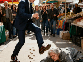 Pateó a una mendiga en público; segundos después, su susurro cambió su vida para siempre.