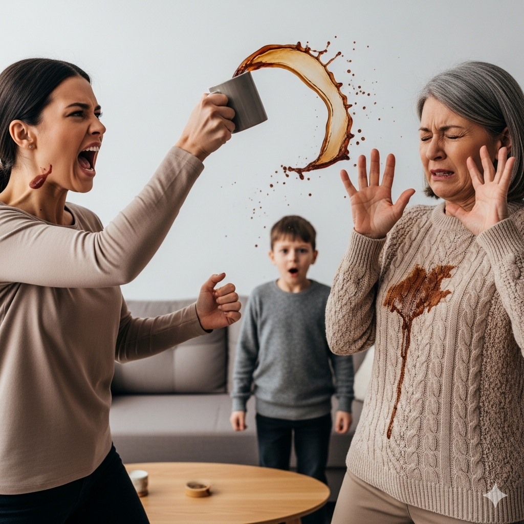Ese “no” fue suficiente para encender la chispa. Lisa, mi hija, estalló. Con un movimiento repentino, volcó mi taza de café sobre mis piernas. El líquido hirviente me quemó los muslos, empapando mi pijama. El dolor físico era intenso, pero lo que más dolía era la humillación.
