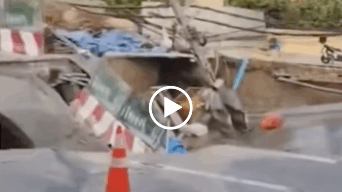 El colapso de una carretera frente al Hospital Vajira provoca interrupciones del tráfico en el distrito de Dusit.