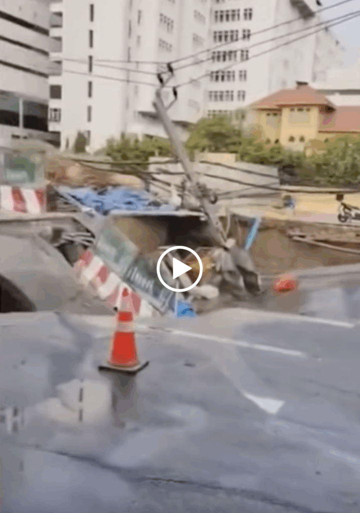 Un tramo de carretera frente a El Hospital Vajira  en Samsen Road, Subdistrito del Hospital Vajira, Distrito Dusit, colapsó repentinamente temprano esta mañana, lo que provocó una respuesta inmediata de los servicios de emergencia.