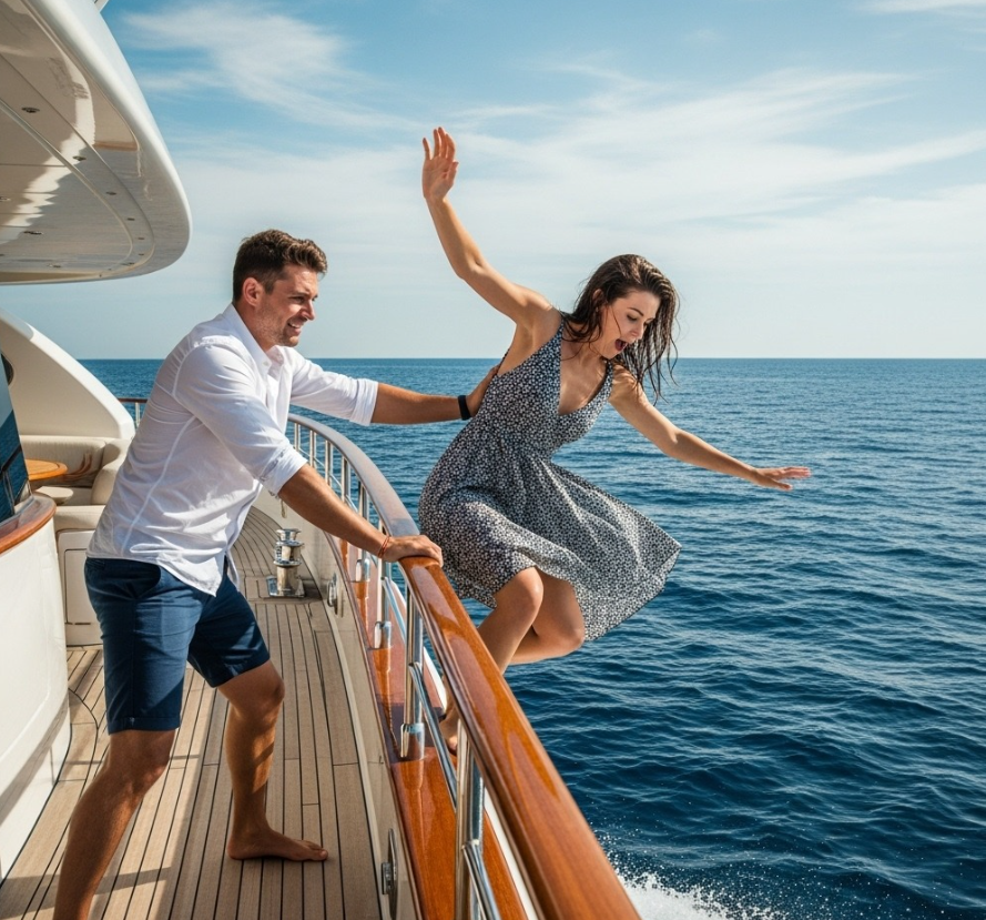 Olivier permaneció inmóvil, con la mirada fija en el lugar donde ella había desaparecido. Su grito fue solo un eco fugaz, ahogado por el rugido del mar y el abismo que lo rodeaba. No lanzó una pelota, no pidió ayuda, no lloró. Sacó su teléfono, respiró hondo y marcó un número. «Soy el capitán Olivier», dijo con voz temblorosa. «Mi esposa». Resbaló, cayó por la borda, se le quebró la voz y cayó de rodillas, agarrándose al borde del bote. No hubo lágrimas, solo un silencio contenido, un gesto calculado y el suave tictac de su reloj de lujo.