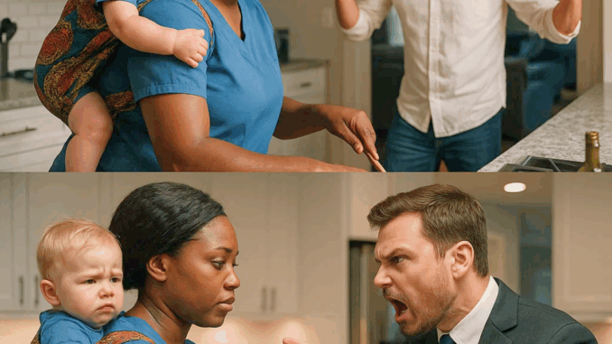 La tensión llegó a su punto álgido cuando Marcus descubrió a Amara cargando a Lily envuelta en el chal africano. Su furia estalló en la cocina. “¡Esto es primitivo! ¡Están tratando a mi hija como una carga!”, gritó. Amara le explicó con calma la tradición y sus beneficios, pero los prejuicios y el dolor de Marcus lo hicieron sordo a la razón. Acusó a Amara de poner en peligro a Lily y la despidió en el acto.