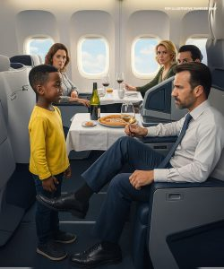Marcus se tragó el dolor, manteniendo la compostura. “Tengo un billete para el 2A”, dijo, mostrando su tarjeta de embarque. El hombre lo ignoró, pasando una página del periódico como si Marcus fuera invisible. Para un chico en su primer viaje independiente, fue una introducción demoledora a la fealdad del prejuicio.