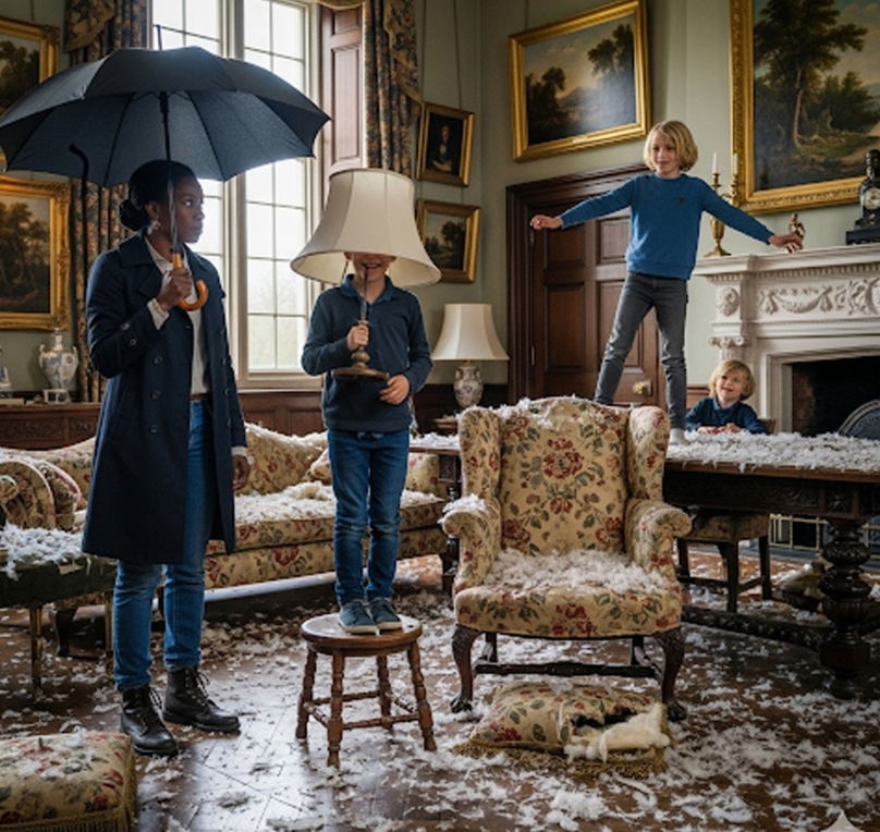 Los niños dejaron de tirar cosas, sorprendidos por sus palabras amables. Ninguna niñera les había hablado así antes. Tommy la miró con recelo.