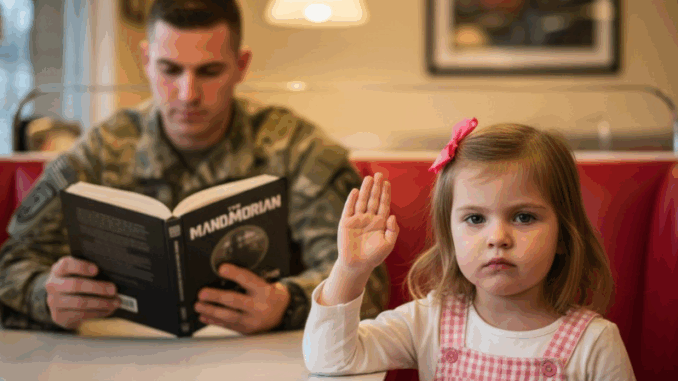 Las familias se acomodaban en sus reservados, los camioneros bebían café humeante y una vieja gramola zumbaba suavemente en un rincón. El sargento Daniel Whitmore, recién llegado de una misión, estaba solo en la barra, revolviendo distraídamente su café negro. Su mirada penetrante, entrenada para percibir detalles que otros pasaban por alto, se posó en una pequeña figura al otro lado de la sala.