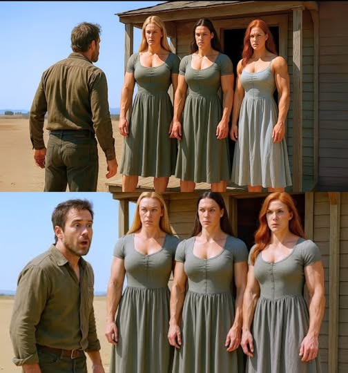 Un escalofrío lo recorrió. ¿Lo habría esperado? El vendedor había insistido en que el trato era privado. Tierras olvidadas, esperando a alguien lo suficientemente valiente como para reclamarlas. Había gastado los ahorros de toda su vida por esa promesa de soledad, cabalgando tres días por el desierto para llegar a ese lugar. Pero ahora, con estas tres mujeres firmemente plantadas en el porche, el aislamiento se sentía menos como libertad y más como una trampa que se cernía sobre él.