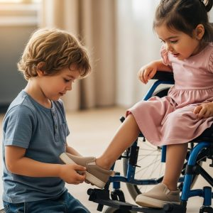 La niña lo observaba con curiosidad. Sus ojos azules brillaban como Eduardo hacía tiempo que no veía. “Hola, princesa”, dijo Mateo en voz baja. “¿Quieres jugar conmigo?”. Valeria murmuró unas palabras incomprensibles y extendió sus bracitos hacia el niño. Mateo se sentó en el suelo junto a la silla y empezó a cantar una suave melodía mientras le masajeaba suavemente los pies. “¿Qué haces?”, le susurró Daniela a Eduardo. “Parece reflexología”, respondió Eduardo, sorprendido.
