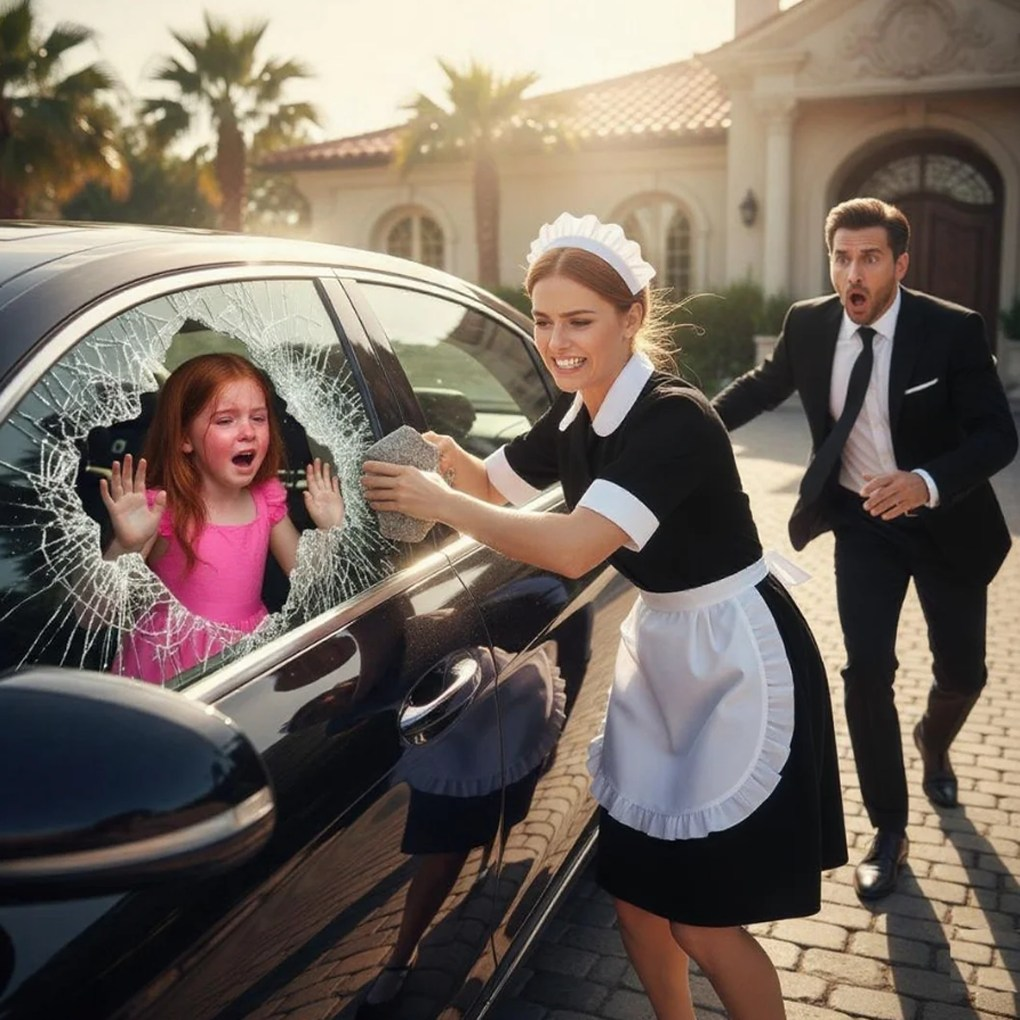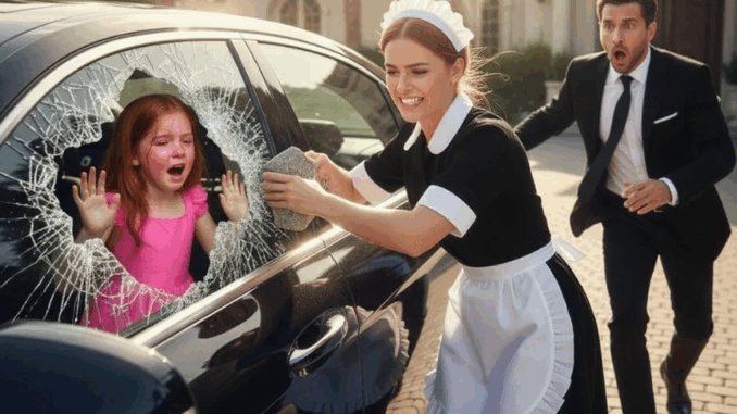 La criada corría alrededor del coche, buscando una grieta, un error, cualquier oportunidad. Pero el lujo del vehículo se había convertido en una trampa perfecta: la armadura era irrompible. Dentro, el frágil cuerpo de Sophie se desplomó lentamente contra el asiento.