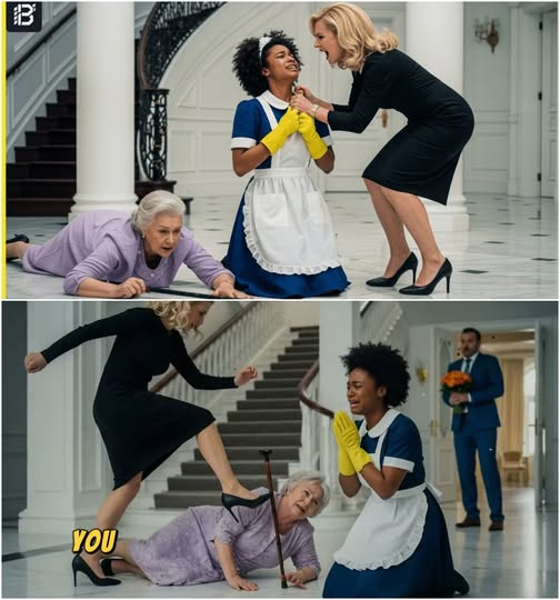 Maya, aún arrodillada, se apartó lentamente, pero Clara no le soltó la mano. El gesto lo decía todo: la anciana confiaba más en la criada que en la prometida de su propio hijo.