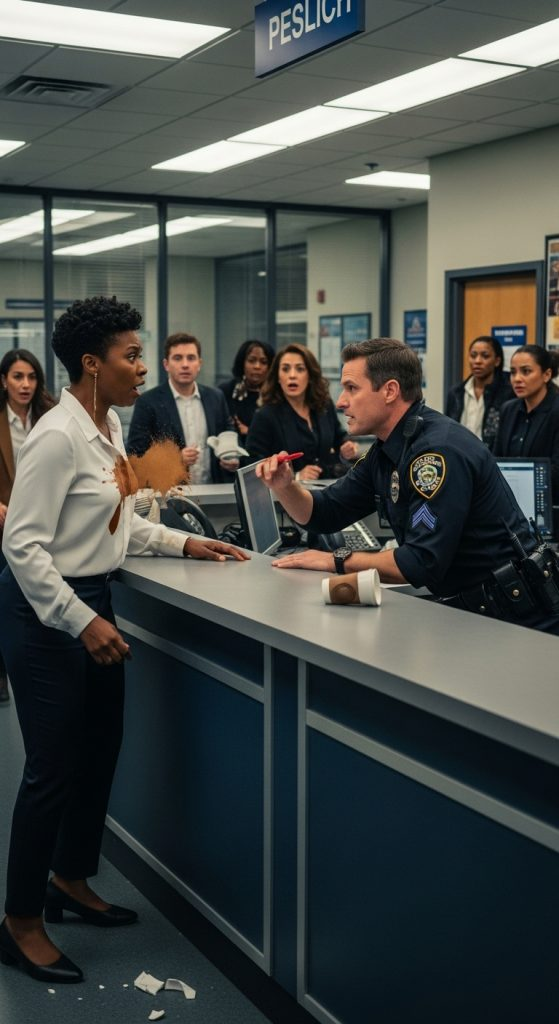 Evelyn se estremeció ante el escozor, pero no gritó. Respiró hondo, enderezó los hombros y sostuvo su mirada con silenciosa fuerza. La habitación quedó en completo silencio cuando dejó la taza, se secó la cara con una servilleta y caminó hacia la salida sin decir palabra.