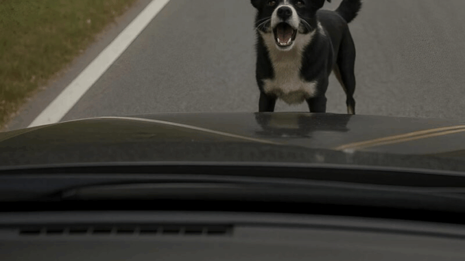 Pero, sorprendentemente, el perro ni se inmutó. Se quedó justo delante del capó y me miró con los ojos brillantes. El perro ladró furiosamente.