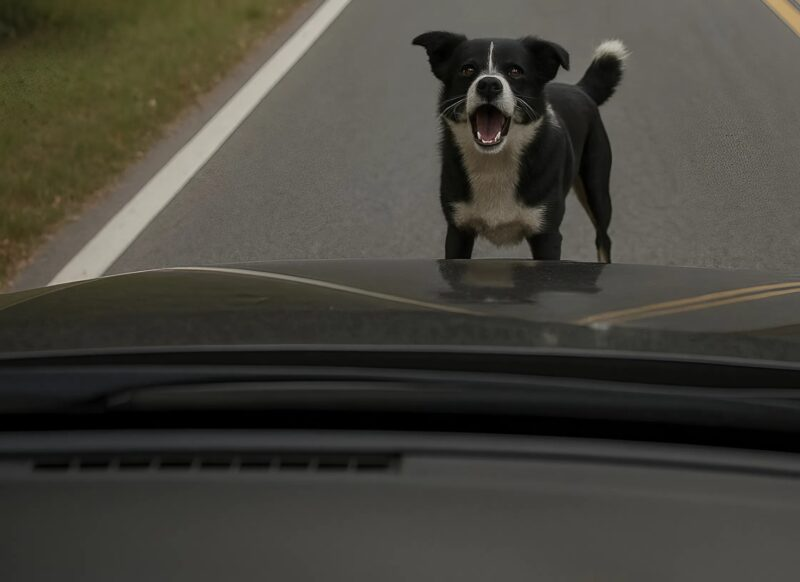 De repente, como si hubiera aparecido de la nada, un perro saltó a la carretera. Frené en seco, los neumáticos chirriaron y el coche se detuvo a escasos centímetros de él. Casi lo atropello.
