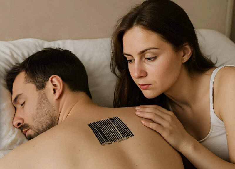 Una noche, mi marido llegó muy tarde a casa. Sin decir palabra, se duchó rápidamente y se durmió casi al instante. Yo estaba acostada a su lado, completamente despierta, cuando de repente me di cuenta: se giró boca abajo. Y allí, en la base de su cuello, vi un tatuaje nuevo. Un código de barras. Líneas negras sobre su piel.