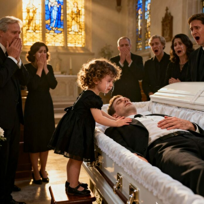 Se desató el caos. El director de la funeraria dejó caer su portapapeles y los invitados se pusieron de pie tambaleándose. Ella levantó su rostro surcado de lágrimas y susurró: “¿Papá?”.