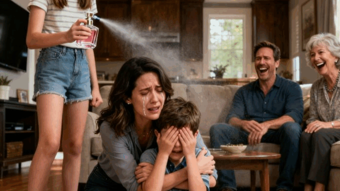 Era una tranquila tarde de domingo en un pequeño barrio residencial de Ohio. La luz del sol calentaba el ordenado salón de la familia Miller, donde aún se percibía un ligero aroma a limpiador de vainilla. Sarah Miller , de diecisiete años, estaba de pie, emocionada, cerca del sofá, sosteniendo un frasco nuevo de perfume que había estado guardando durante semanas para comprar.