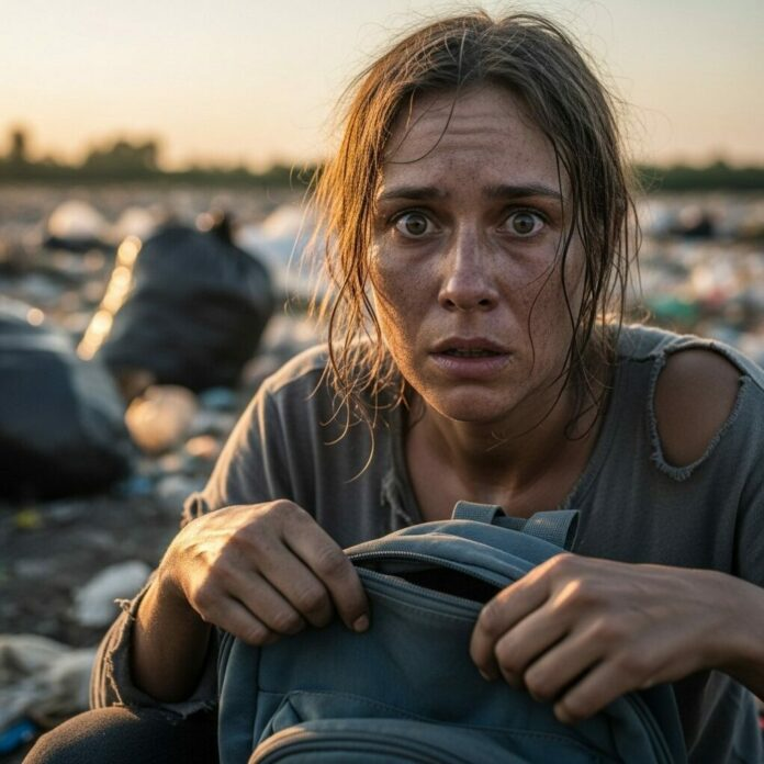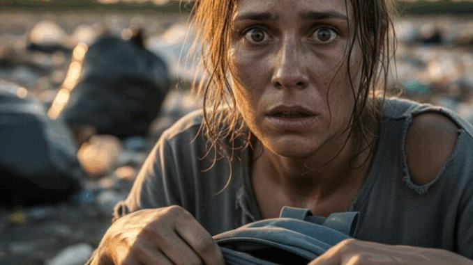 Hay momentos en la vida en que la moral no se pone a prueba con grandes discursos ni profundas reflexiones, sino con una sola decisión desesperada tomada en segundos. Para Emily Richardson, ese momento llegó una fría noche de octubre cuando vio una camioneta negra detenerse junto al vertedero municipal y tirar una mochila azul brillante.