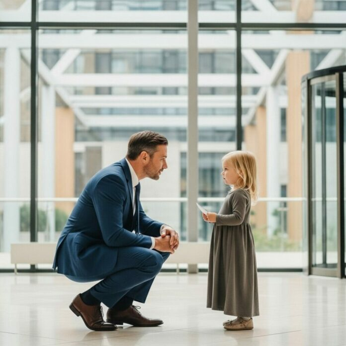 La voz temblorosa de una niña de siete años resonó en el inmenso vestíbulo de Turner Technologies, uno de los conglomerados tecnológicos más poderosos de Seattle. Sus pequeñas manos aferraban un sobre arrugado como si fuera un tesoro. Se llamaba Chloe Evans.