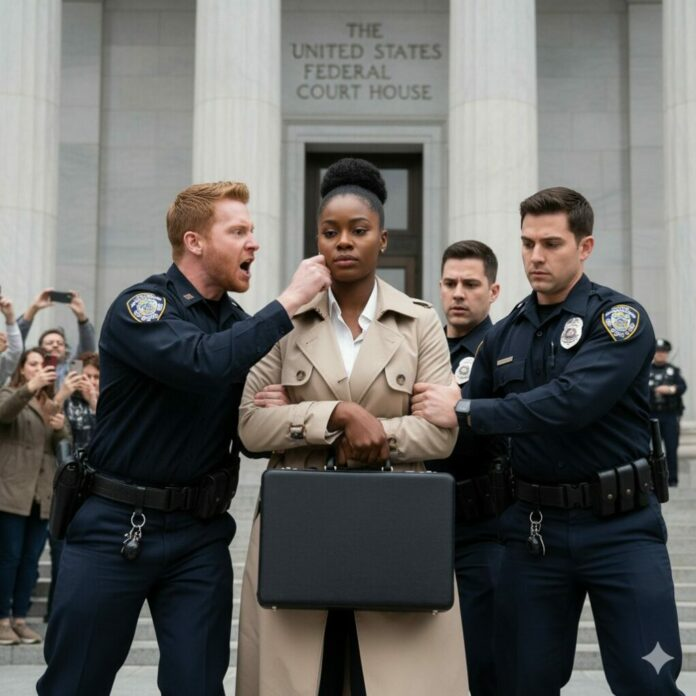 El grito resonó por el salón de mármol del juzgado del condado de Franklin. La jueza Cassandra Reed , vestida con un sencillo traje gris y con un maletín de cuero, se quedó paralizada cuando un agente uniformado se abalanzó sobre ella.