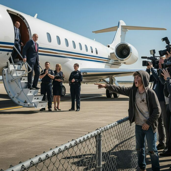 Las palabras cortaron el aire frío como una cuchilla. Todos se quedaron paralizados. Las cabezas se giraron hacia la valla metálica cerca del borde de la pista. Un niño estaba allí, de no más de doce años, con la sudadera rota, los vaqueros sucios y las zapatillas rotas por la puntera. Su cabello oscuro se alzaba en mechones desordenados y tenía la cara manchada de polvo. Pero sus ojos —abiertos, aterrorizados, sin pestañear— estaban fijos en Alexander.