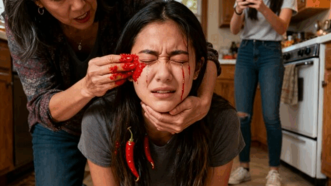 Antes de que Harper pudiera reaccionar, su madre la agarró del brazo y la arrastró a la cocina. En la encimera había un pequeño frasco de vidrio lleno de una mezcla roja y espesa: la mezcla casera de chile que Linda usaba para cocinar.