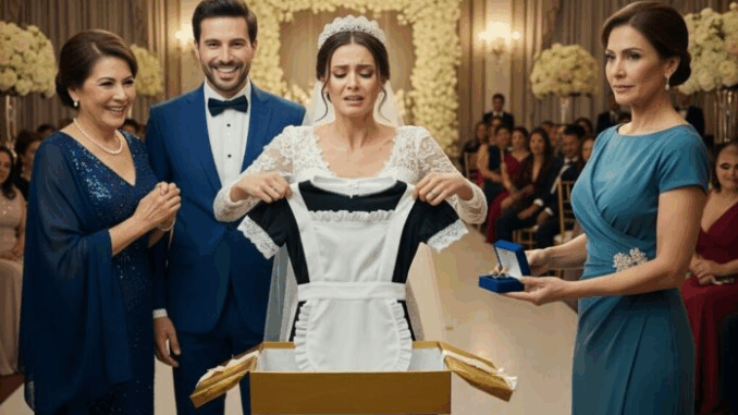 Mi nombre es Elellanena Pierce , y nada podría haberme preparado para el momento en el que mi hija, Molly Pierce , se quedó congelada en la recepción de su propia boda, sosteniendo un uniforme de mucama como si fuera una oración en lugar de un regalo.