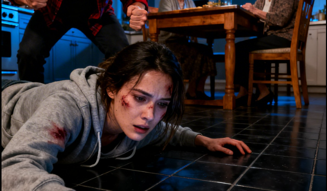 Me desplomé sobre las baldosas de la cocina. El frío me golpeó la mejilla. Mi visión se nubló. Mis costillas ardían como si las hubieran llenado de brasas.